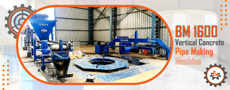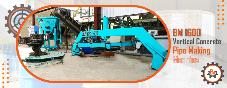 BM-1600 Vertical Vibration Casting Concrete Pipe Making Machine is one of the most advanced Concrete pipes making technology in the world, which integrate the technology of mechanical, electric, Hydraulic and Semi and Fully Automatics. The machine can produce products in BM-1600 size 300 mm to 1600 mm and a length of up to 2.5 meters.