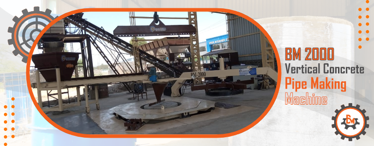The BM-2000 Vertical Concrete Pipe Machine is a high-performance machine for the production of concrete pipes with a diameter of 800mm to 2000mm and a length of up to 2.5 meters. It is one of the most advanced concrete pipe making technologies in the world, integrating the technology of mechanical, electric, and hydraulic.