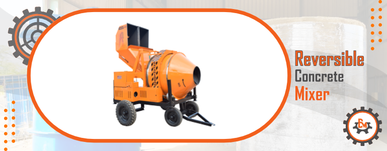 Reversible concrete mixer has containers wherein sand, concrete and different totals are carefully gauged and stacked in its rock solid blender drum. In this reversible drum, concrete is blended in forward pivot and released backward turn. The choices of single canister, three receptacle and four containers are according to prerequisite.